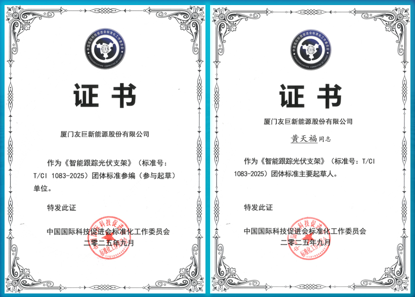 Recently, the Standardization Working Committee of the China International Science and Technology Promotion Association officially approved and released the group standard “Intelligent Solar Tracking Mounting Systems” (T/CI 1083-2025). As a key participating organization, Huge Energy was deeply involved in the technical validation and drafting of the standard, contributing its accumulated expertise to the industry. The standard was jointly developed with numerous renowned universities, research institutes, and leading enterprises, marking further recognition of the company’s technical strength in the field of solar tracking systems.